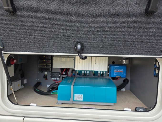 Combinación de tomas de corriente, 230 V/12 V/antena en el compartimento exterior para conexión opcional de TV externa, toma de TV externa como entrada