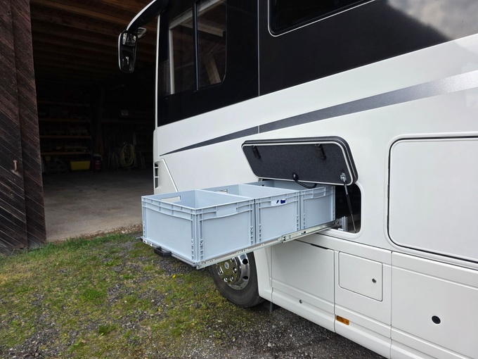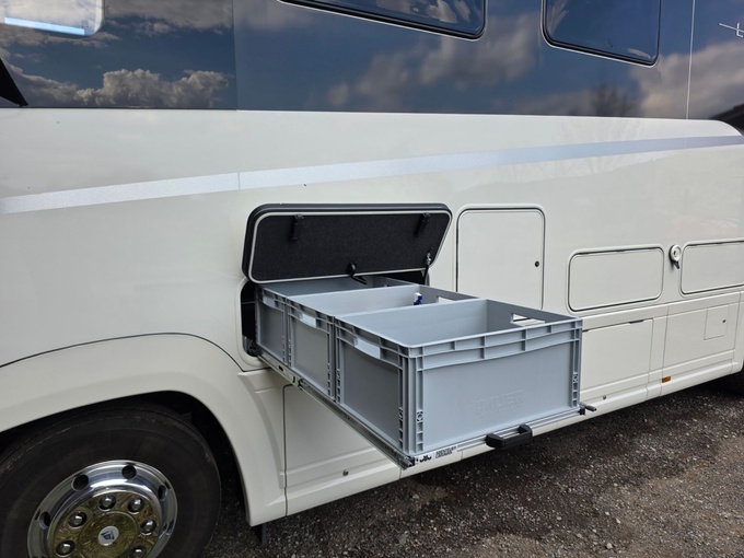 Caja bajo suelo de acero inoxidable en el lado del acompañante delante del eje trasero (Steitz-Groß Gerau 02/2023)
