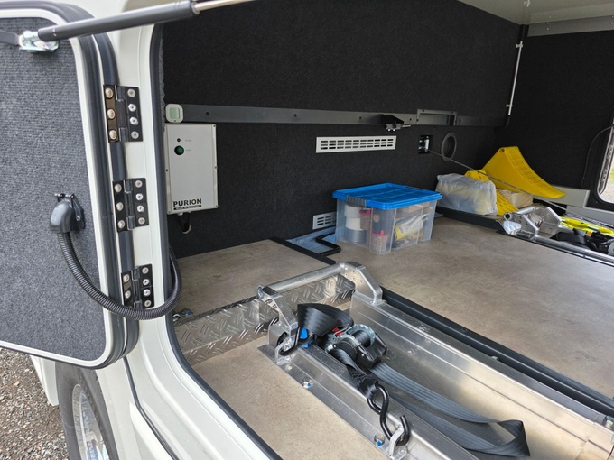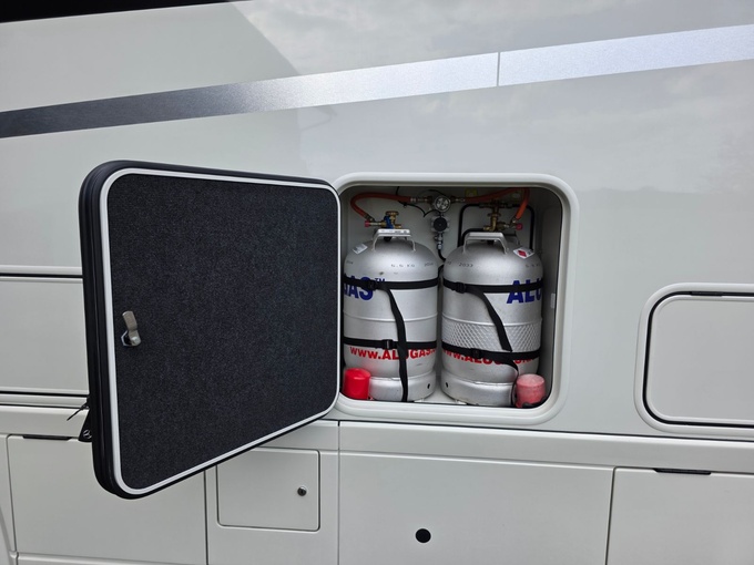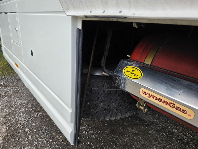 Depósito de agua fresca aprox. 400 litros, depósito de aguas residuales aprox. 300 litros en doble suelo calefactado