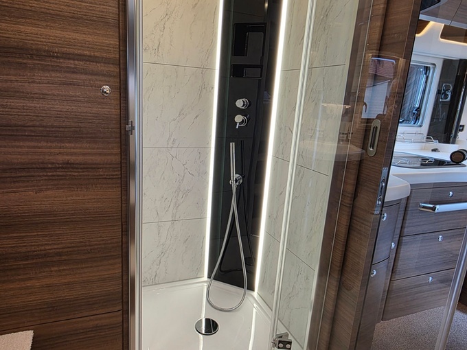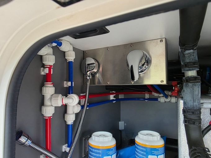 Ducha exterior en el compartimento técnico "agua/calefacción" en el lado del conductor