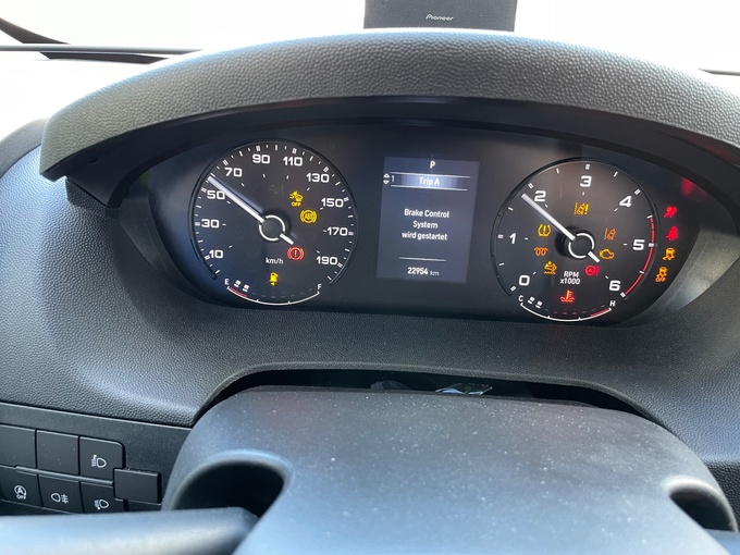 De vez en cuando, aparecen los mensajes de error "Haga revisar la transmisión" o "Haga revisar el motor". La caja de cambios cambia perfectamente. Hemos acudido a un taller FIAT Professional con este mensaje de error. Allí no reconocieron ningún problema mecánico ni ningún defecto. En cambio, nos dijeron que se trata de un mensaje de error conocido para la caja de cambios automática de 9 velocidades instalada en este FIAT Ducato. En breve se instalará una actualización de software de FIAT, que debería rectificar este mensaje de error. No obstante, el vehículo pasó la ITV sin ninguna queja.