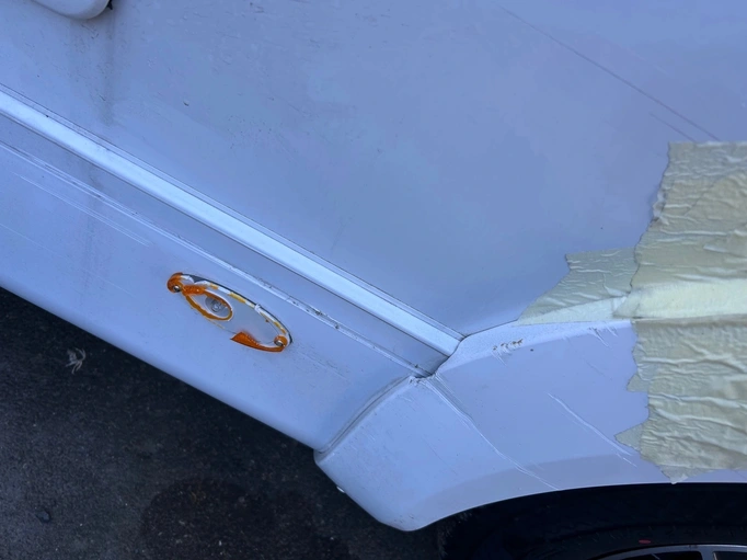 Faldón encima de la rueda trasera izquierda rasgado